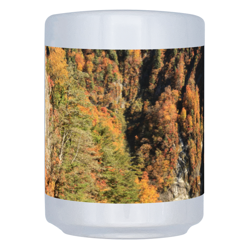 黒部峡谷の下ノ廊下の断崖絶壁にある登山道。 湯呑(M)サイズ 約Φ71×96(mm)(容量 約250ml) 素材情報 ストーンウェア
