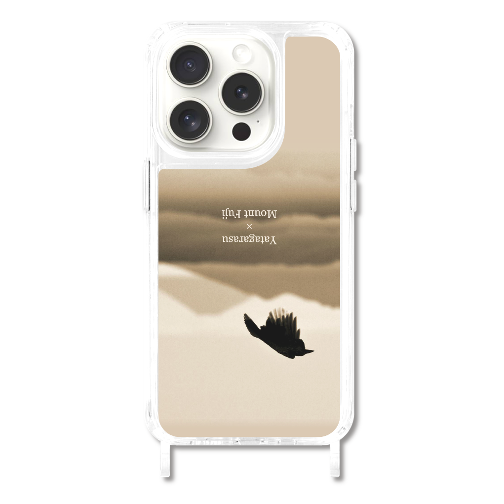 八咫烏と 富士山 Yatagarasu toMount Fuji サッカー セピア iPhone15 Pro用リング型ストラップホール付クリアケース 八咫烏と富士山という組み合わせの写真です。日本アルプスと併せて、奇跡の瞬間の一枚の弊社オリジナル写真を利用しています。