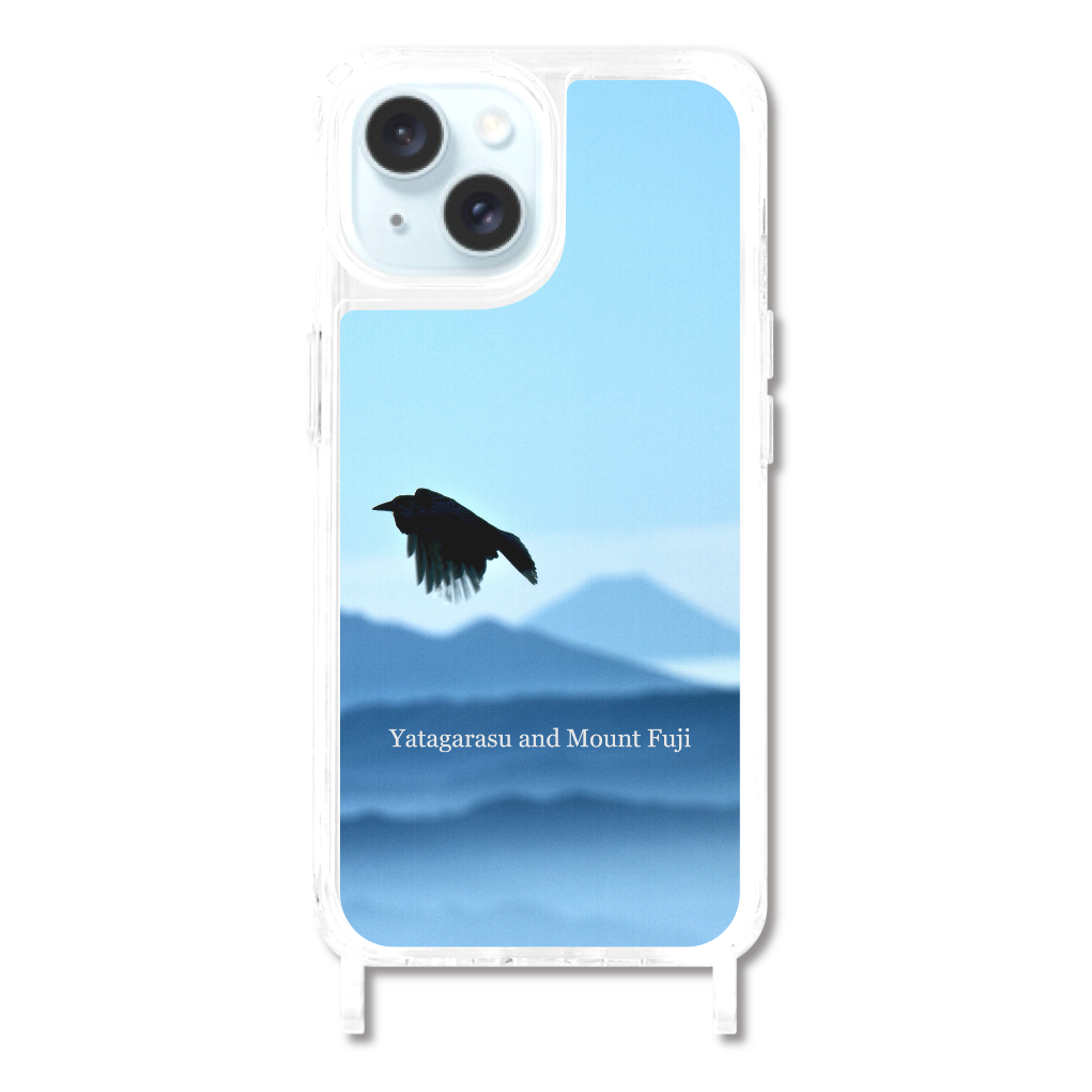 八咫烏と 富士山 日本アルプス Yatagarasu and Mount Fuji iPhone15用リング型ストラップホール付クリアケース