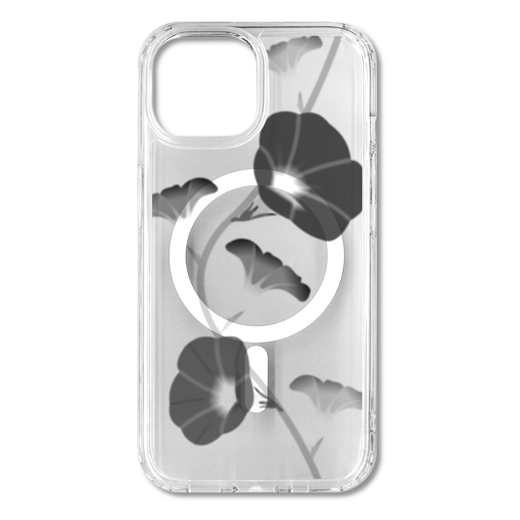 朝顔 黒透過 iPhone15 MagSafe対応 耐衝撃クリアケース