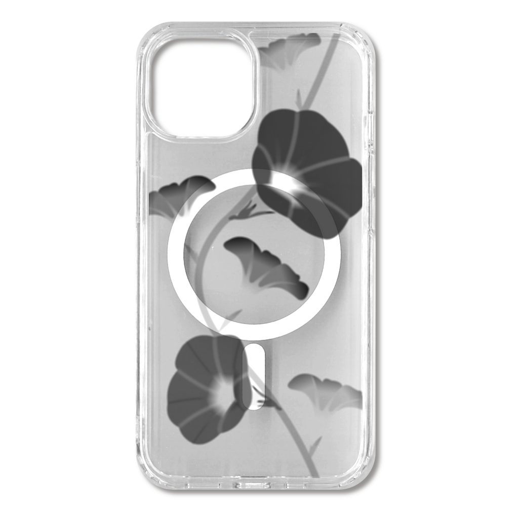 朝顔 黒透過 iPhone14 MagSafe対応 耐衝撃クリアケース