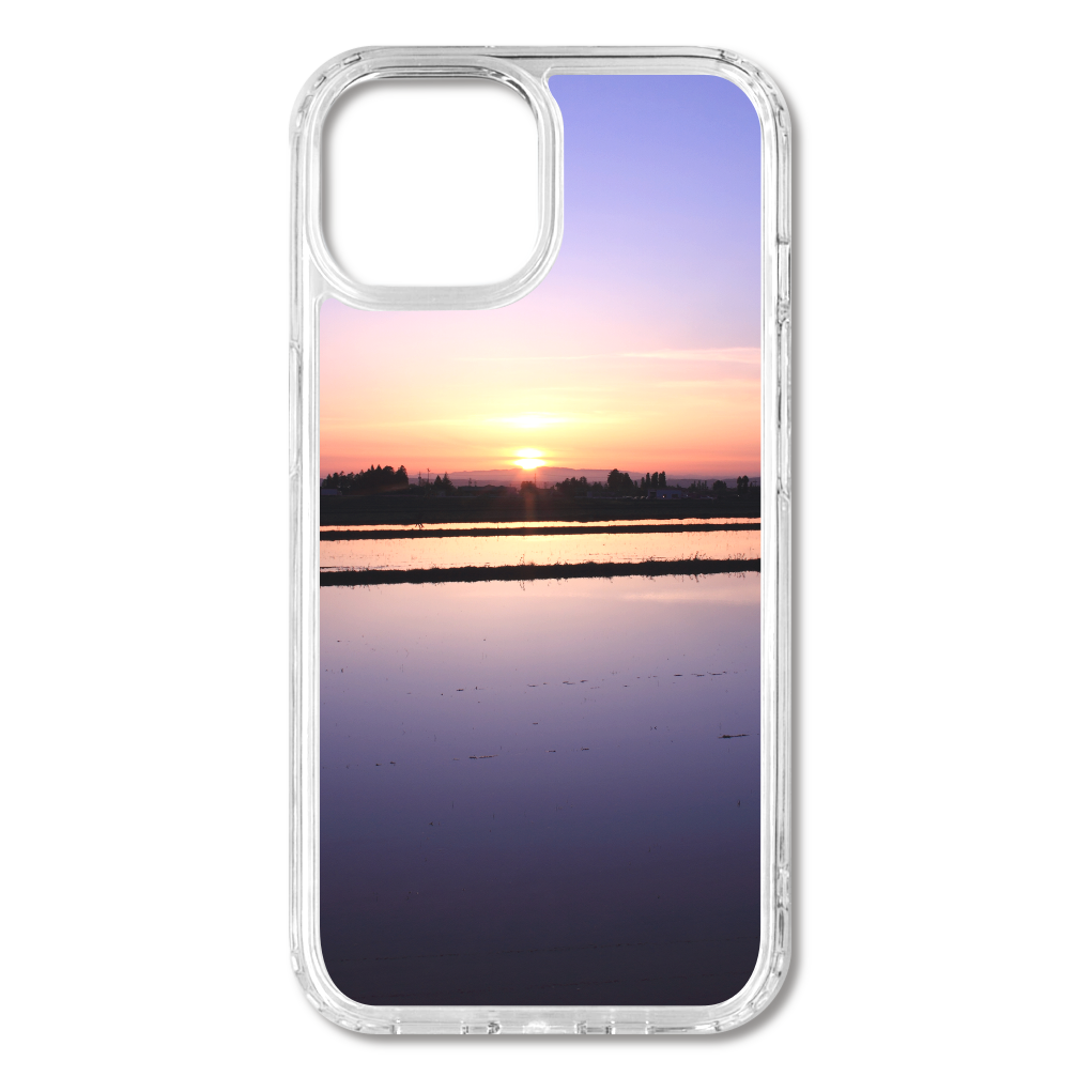 水田の夕日-1年に数日間の奇跡の光景-iPhone15 MagSafe対応 耐衝撃クリアケース