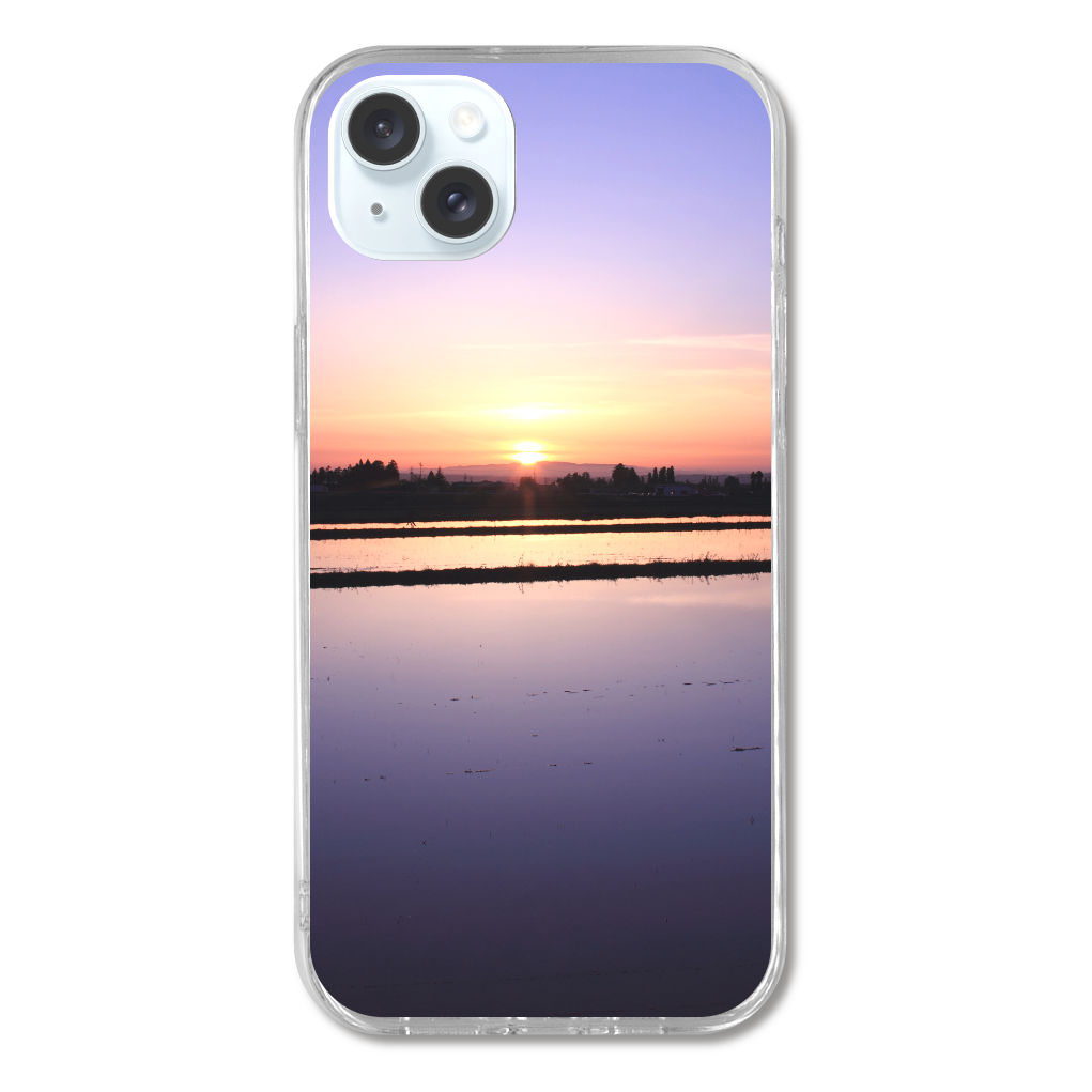水田の夕日-1年に数日間の奇跡の光景-iPhone15 Plus TPUケース